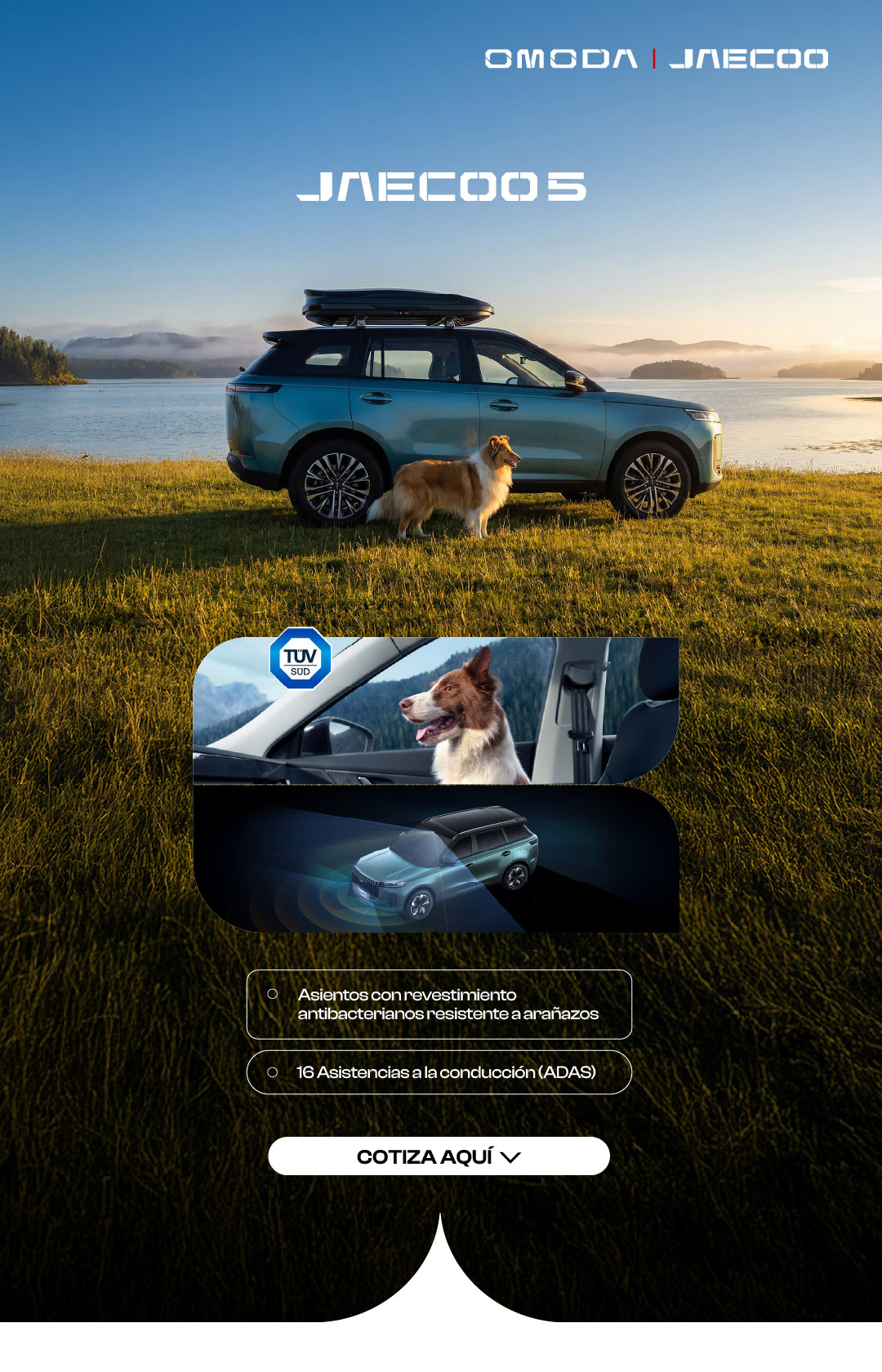 El JAECOO 5 está diseñado para que tu mascota viaje con la mejor tecnología y seguridad. Cada detalle ha sido pensado para cuidar tu auto y a tu compañero peludo, con toda la protección que ambos merecen.